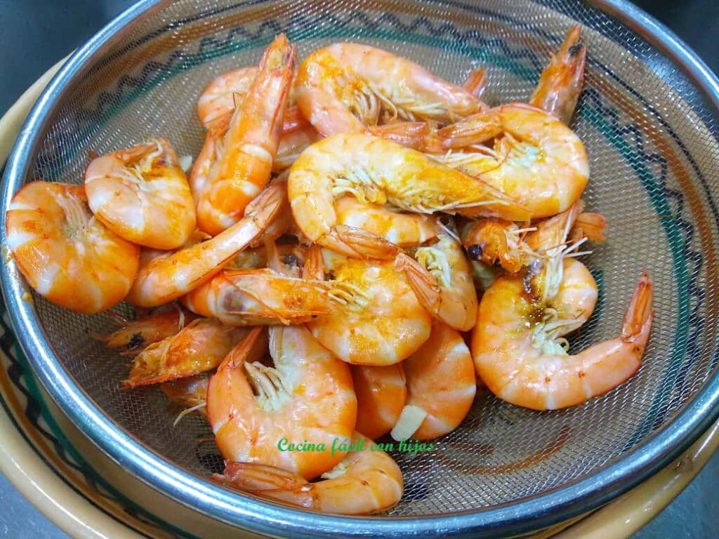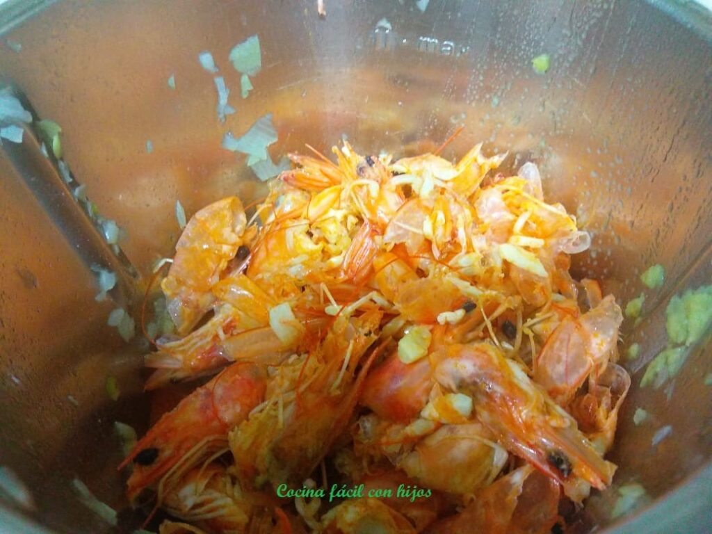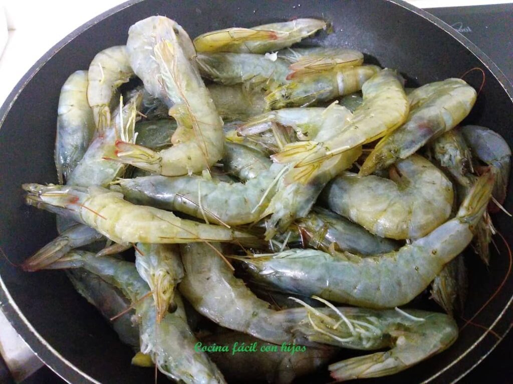 • Ponemos las cáscaras y las cabezas, en la sartén en la que hemos hecho los langostinos.
