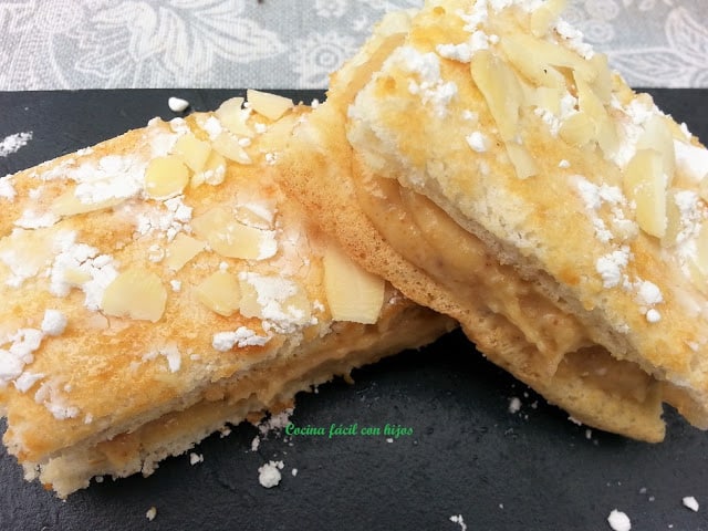 Rellenamos el bizcocho con la crema, casi como si fuera un sándwich.