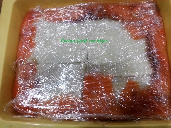 - Aplastamos bien y cerramos con el film transparente. Y lo dejamos en el frigorífico mínimo 6 horas.