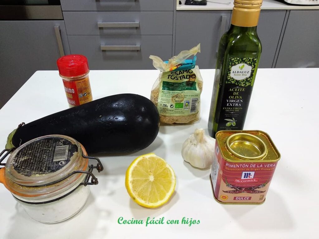 • Preparamos los ingredientes para hacer el paté de berenjena