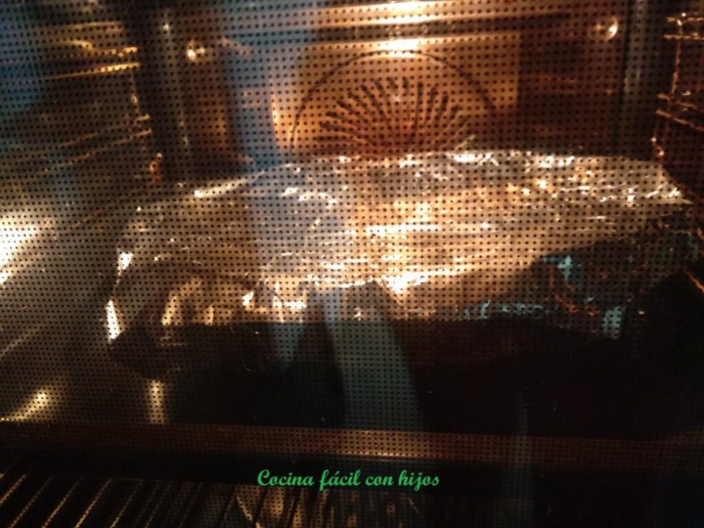 • Precalentamos el horno a 200º C. Metemos las berenjenas y las dejamos asándose, aproximadamente 20 m, hasta que veamos que están blandas.