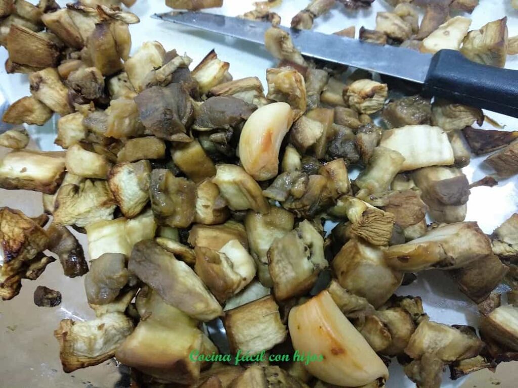 Asamos la berenjena, la dejamos enfriar.