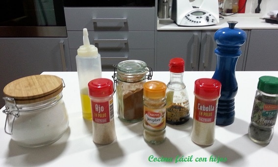 • Mezclamos bien todos los ingredientes; el zumo de limón, un chorrito de aceite de oliva, el vino, la pimienta, la soja, el ajo, la cebolla, el pimentón, el jengibre, el azúcar y el perejil.