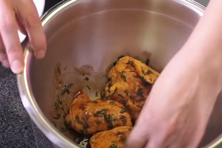 Marinamos el pollo para que esté más tierno, se aromatice, gane sabor y textura. Para hacerlo vamos a poner en remojo el pollo en líquido con especias durante doce horas.