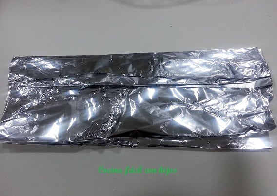 - Hacemos una prensa con papel de aluminio, porque cuando se retira el foie micuit del horno hay que quitar la grasa que sobra.