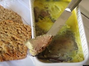 - La cocción se realiza en el horno al baño maría, para lo que es necesario colocar una bandeja profunda con agua caliente. En su interior se coloca el molde con el foie.