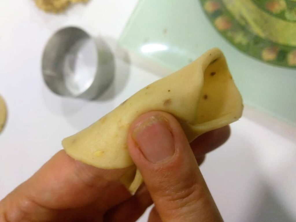 - Unimos los extremos de cada círculo apretando con los dedos la unión para evitar que se abran al freírlos. y procurando que quede hueco por dentro