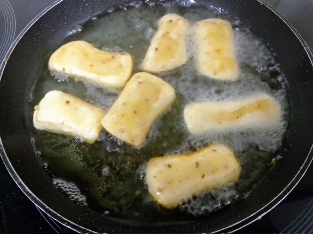 - Para que no se nos abra la masa al freírlos, otro truco es echarlos a la sartén por la parte de la unión, freírlos y luego darlos la vuelta.