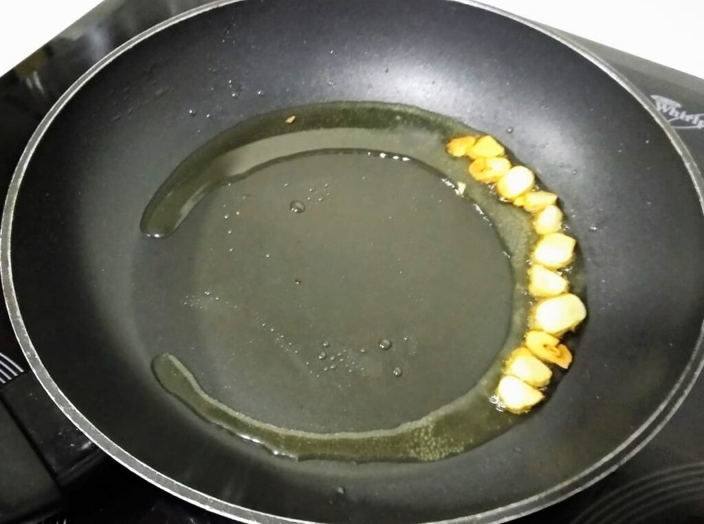 3. Laminamos unos ajos y con ellos vamos a aromatizar el aceite.