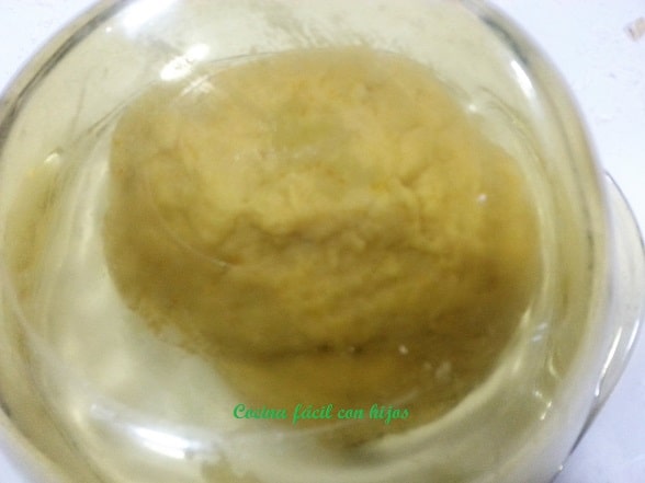 • Ponemos la bola, nuevamente, dentro del bol, tapamos con papel film o con tapadera, y la dejamos reposar 10 minutos