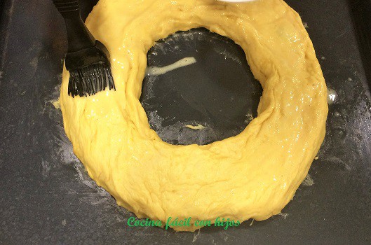 Es necesario hacerla en esta forma porque nos aporta el punto de humedad justo para amasar el roscón con más facilidad.