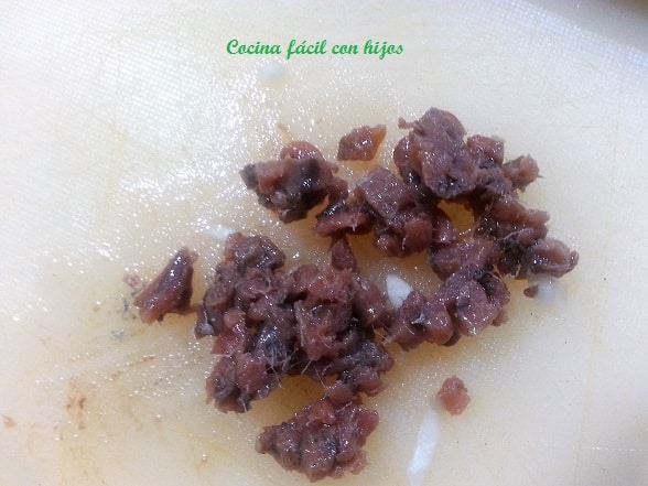 - Troceamos los filetes de anchoa en trocitos muy pequeños