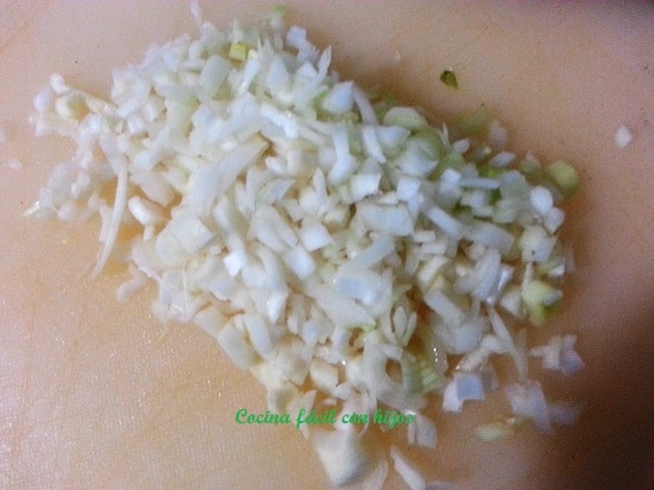 - Picamos la cebolleta en trocitos muy pequeños.