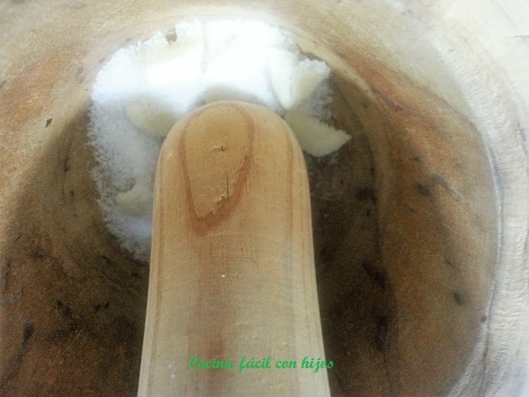 - Lo machacamos en un mortero junto a la sal y lo añadimos al bol, volvemos a mezclar.