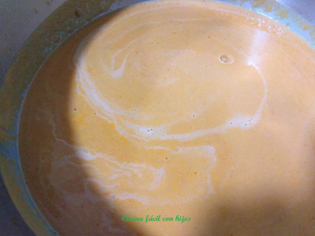 - Cuando han pasado los 10 minutos. Ponemos esta preparación en el vaso de la batidora. Lo trituramos y después por el chino. No triturarlo en exceso para que no pasen las cáscaras a través del chino.