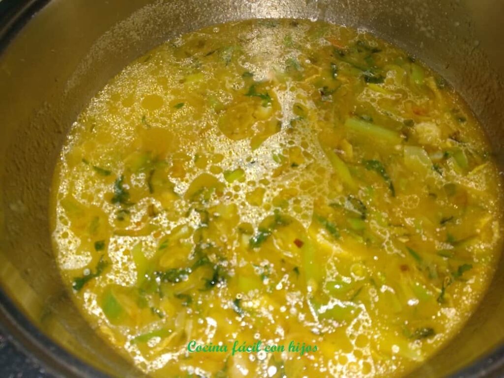 - Añadimos el caldo o el agua y rectificamos de sal, en olla exprés una vez que alcanza la temperatura son 12 minutos.