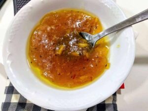 - Separamos el aceite, que hemos utilizado para hacer el sofrito, de la cebolla.