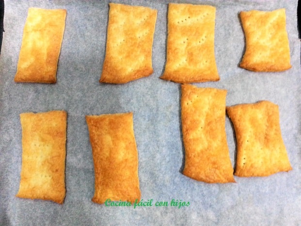 - Ponemos en un plato las láminas de hojaldre que han debido quedar doradas y crujientes.