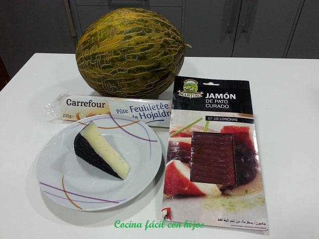- Mientras se hace en el horno, vamos cortando el melón en láminas finas y el queso.