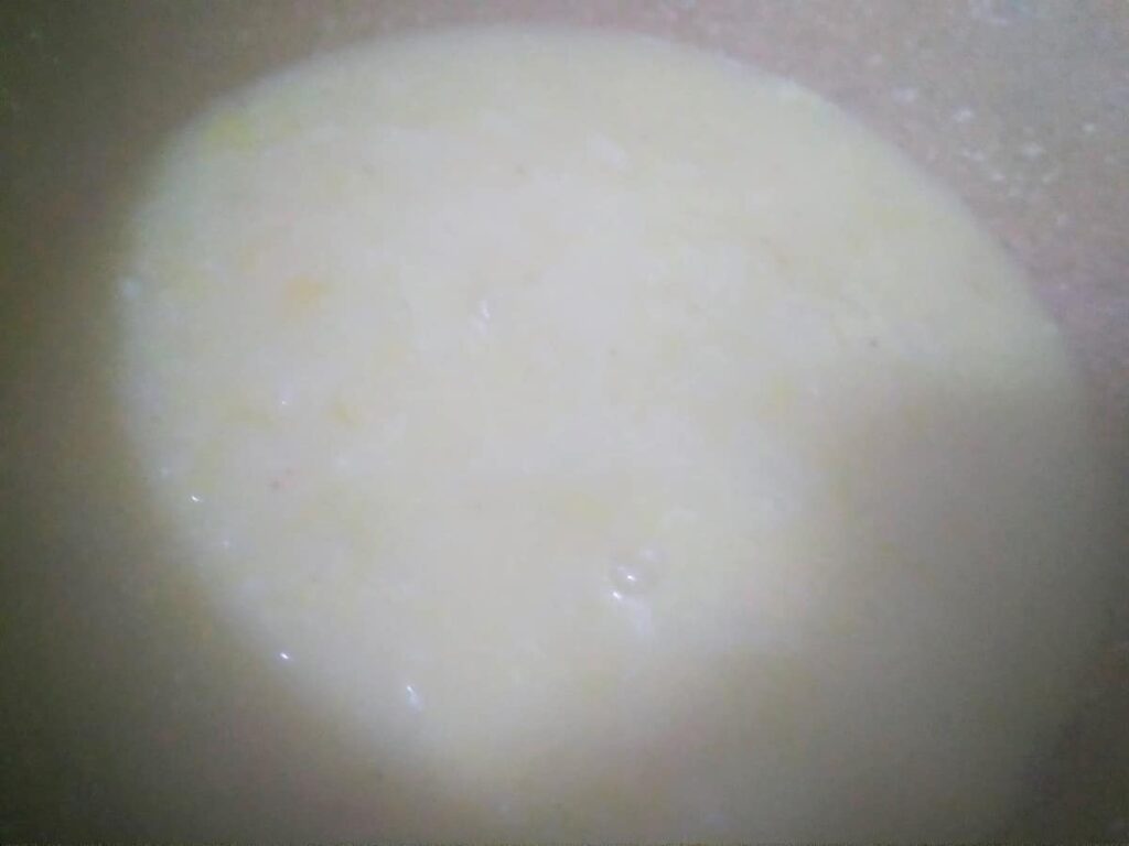- Tritura la mezcla con la batidora, agrega la nata y cocina durante 5 minutos, añade la pizca de nuez moscada.